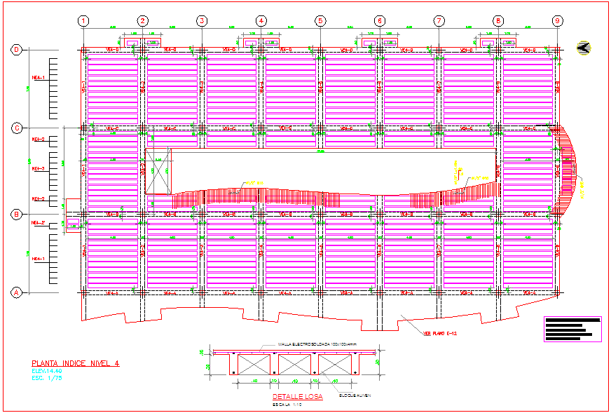 Structure Design of fourth floor plan dwg file with distribution of area and column view with detail of beam in Structure Design of fourth floor plan