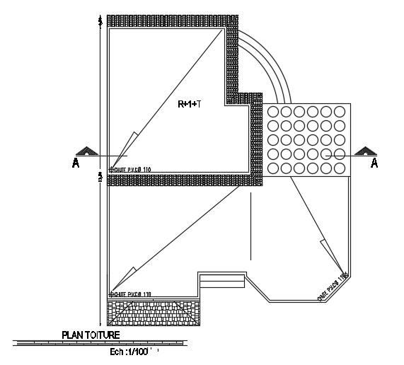 The rainwater hole detail of the 11x14m house plan drawing is given in this file. On this ground floor, the living room, kitchen, dining area, garage, porch, hall, and common bathroom is available. On this first floor, the master bedroom with the attached balcony, kid’s room with the attached balcony, guest bedroom, and common bathroom is available. The staircase is provided inside of a home. For more details download the AutoCAD drawing file from our cadbull website.