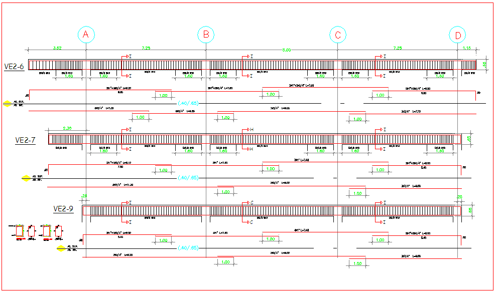 Structure Detail with sectional detail dwg file with dimensional view of section of column and beam and dimension of beam.