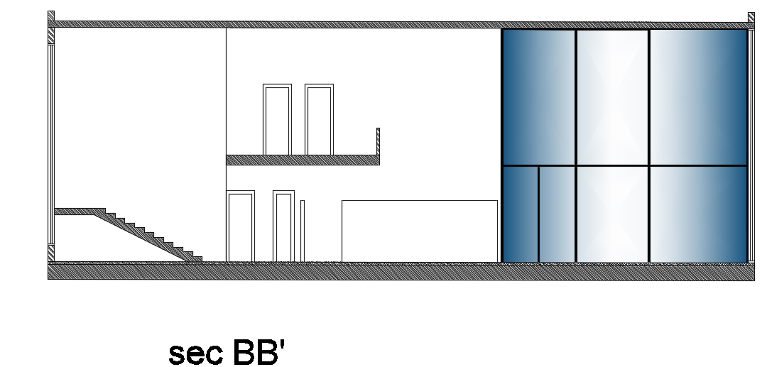 The right side cut section view of the 40x70m luxury villa building cad model is given