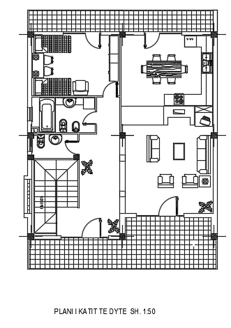 10x13m architecture third floor house plan CAD drawing is given in this file. This is four story residential building. On this third floor, the living room, kitchen, dining area, master bedroom, common toilet, and common bathroom is available. For more details download the AutoCAD drawing model from our cadbull website.