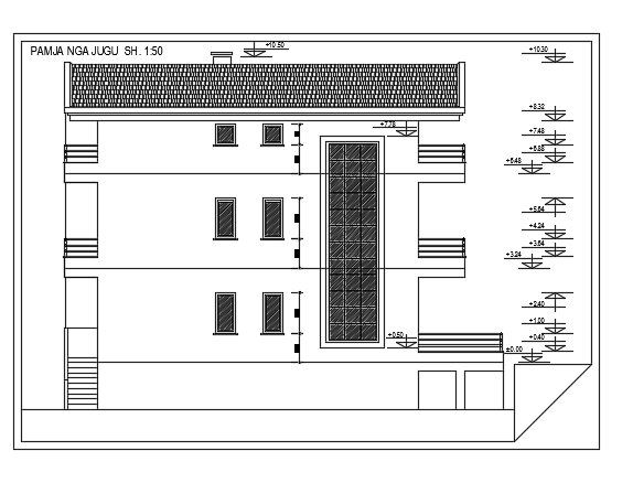 The left side elevation view of the 10x13m house building drawing is given in this file. This is four story house building. On this ground floor, the garage, department, and attached bathroom is available. On this first floor, the living room, kitchen, dining area, master bedroom, common toilet, and common bathroom is available. On this second floor, the master bedroom, guest bedroom, kid’s bedroom, and common bathroom is available. On this third floor, the living room, kitchen, dining area, master bedroom, common toilet, and common bathroom is available. For more details download the AutoCAD drawing model from our cadbull website.