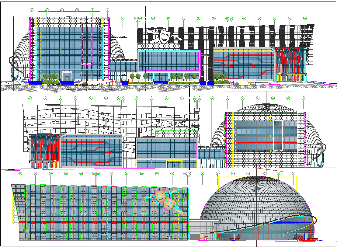 The architecture layout plan with structure plan, construction plan, section plan and elevation design of Multiplex and Shopping Center project in autocad format.