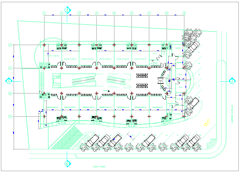 Structure Detail for level 1 dwg file with column view and view of parking and garden