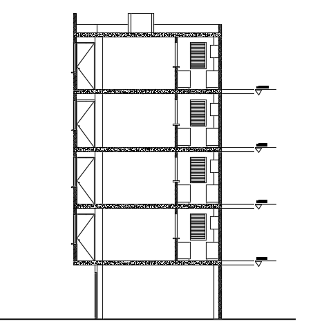 The left side section view of the 30x6m apartment building AutoCAD drawing