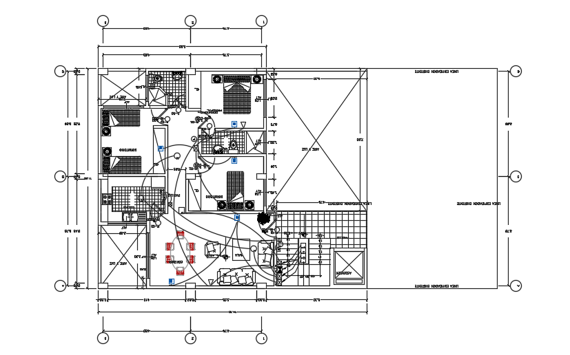 An electrical layout of the 20x12m five story apartment third floor cad drawing is given in this file. On each second floor, two houses are available with 3bhk. This is G+ 4 apartment building. On this third floor, the living room, kitchen, dining area, master bedroom with the attached toilet, kid’s bedroom, guest bedroom, and common bathroom is available. For more details download the AutoCAD model from our cadbull website.