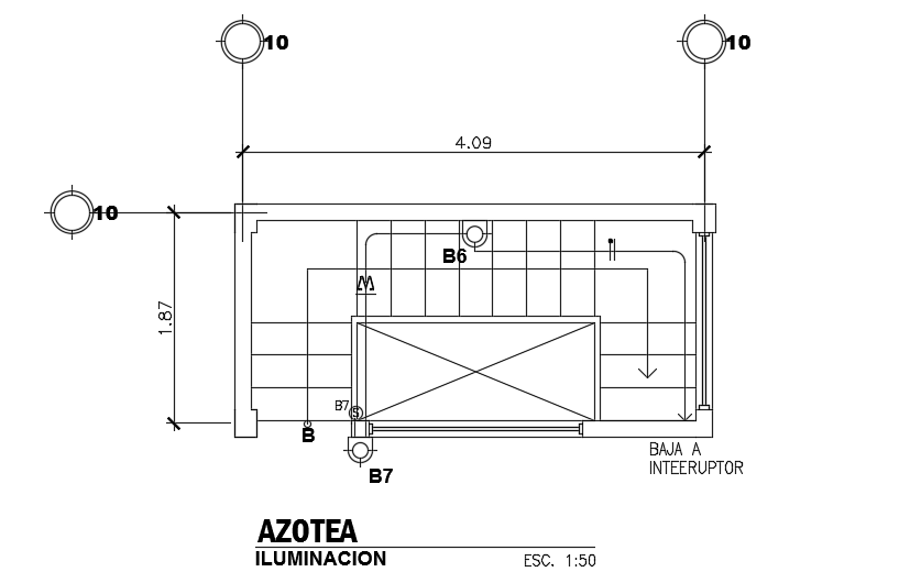 4090x1870mm staircase plan AutoCAD 2D drawing is given in this file. The length and breadth of the staircase plan are 4.09m and 1.87m respectively. For more details download the AutoCAD model from our cadbull website.