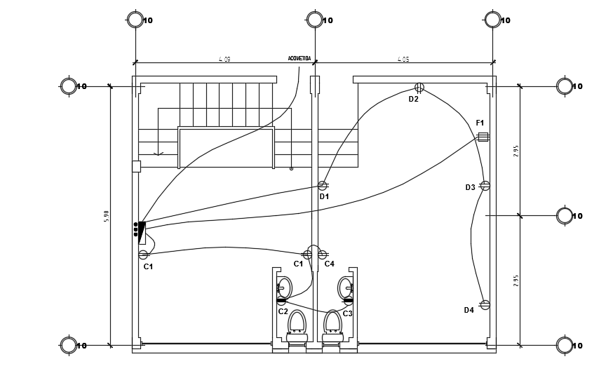 The switch point location of the 9x6m ground floor house plan cad drawing is given in this file. This is two story house building. On this ground floor, two car parking, and common bathrooms are available. For more details download the AutoCAD model from our cadbull website.