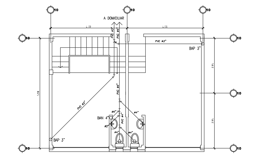 A sanitary water line layout of the 9x6m ground floor house plan cad drawing is given in this file. This is two story house building. On this ground floor, two car parking, and common bathrooms are available. For more details download the AutoCAD model from our cadbull website.