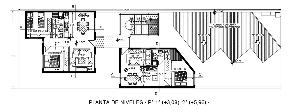 34x10m three story first floor residential plan AutoCAD model is given in this file. On the first house, living room, hall, dining area, master bedroom, kid’s bedroom, and common bathroom is available. On this second house plan, the living room, kitchen, dining area, master bedroom, and common bathroom is available. For more details download the AutoCAD model from our cadbull website.