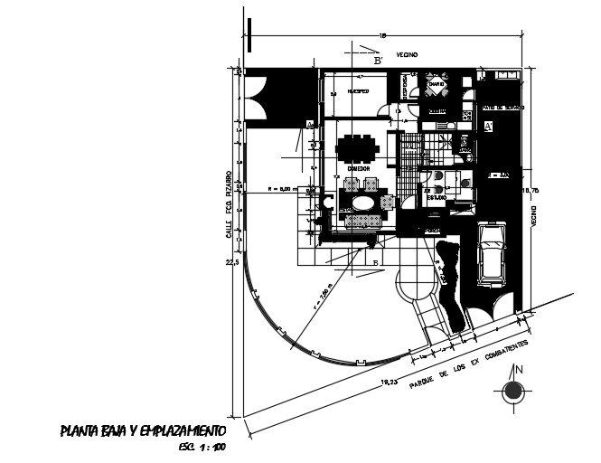 18x16m architecture ground floor house plan AutoCAD 2d drawing is given in this file. This is two story house building. On this ground floor, the car parking, living room, dining area, kitchen, storeroom, and common bathroom is available. The staircase is provided inside of a home. For more details download the AutoCAD model from our cadbull website.
