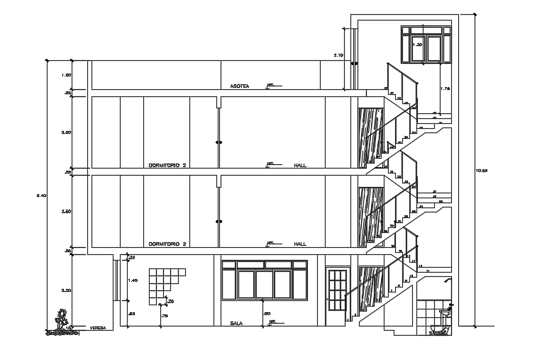 The front cut section view of the12x22m multifamily house building is given in this file