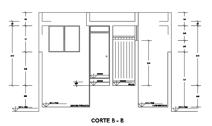 The left side cut section BB view of the 12x6m 3bhk house building CAD drawing is given in this file. The total height of the building is 4.2m. This is a single story residential building. On this floor plan, the living room, kitchen, dining area, master bedroom, kids’ bedroom, guest bedroom, garden, and common bathroom is available. For more details download the AutoCAD model from our cadbull website.