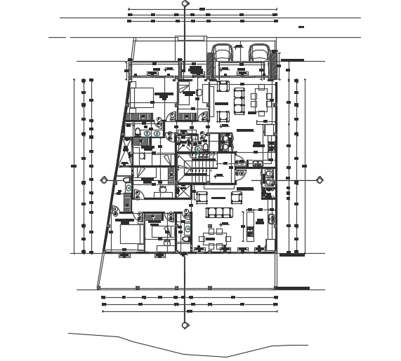 12x21m three story second floor house plan AutoCAD model is given in this file. On this first floor, two houses are available. This is G+ 2 residential building. On this first floor, the living room, lavanderia, kitchen, dining area, master bedroom, kid’s bedroom, guest bedroom, and common bathroom is available. For more details download the AutoCAD model from our cadbull website.