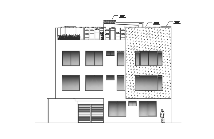 The right side elevation view of the 12x21m three story house building AutoCAD model