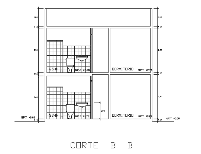 The back side section view of the6x20m architecture house building is given in this file. This is two story house building. On this ground floor, the living room, patio, garden, guest room, kitchen, dining area, master bedroom, open void, kid’s bedroom, and common bathroom is available. On this first floor, the living room, kitchen, dining area, master bedroom, open void, kid’s bedroom, and common bathroom is available. The total height of the building is 6.2m. For more details download the AutoCAD drawing model from our website. Thank you for downloading the AutoCAD file from our cadbull website.