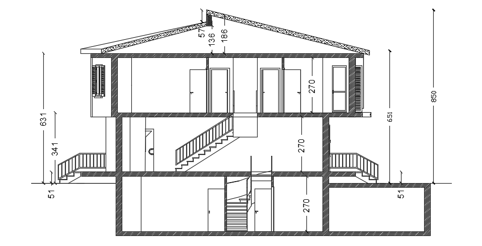 The left side cut section view of the 8X12m three story house building with garage AutoCAD drawing is given in this file. On this ground floor plan, the car parking, store room, and water closet is available. On this first floor, the living room, kitchen, and common bathroom is available. On this second floor, the master bedroom, kid’s bedroom, guest bedroom, three common bathrooms, and balconies are available. For more details download the AutoCAD drawing model from our website. Thank you for downloading the AutoCAD file from our cadbull website.