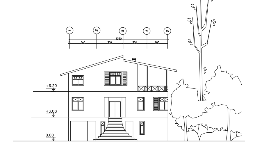 The east side elevation view of the 9x12m architecture 3 story bungalow house building is given in this file. On this ground floor, the car parking, maid room with the attached bathroom, living room, and store room is available. On this first floor, the living room, kitchen, dining area, master bedroom, kid’s bedroom, and two common bathrooms are available. On this second floor, the living room, kitchen, master bedroom, kid’s bedroom, and common bathroom is available. For more details download the AutoCAD drawing model from our website. Thank you for downloading the AutoCAD file from our cadbull website.