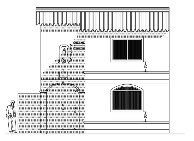 The front elevation view of the 7x10m architecture two story house building cad drawing is given in this file. On this ground floor, the living room, kitchen, dining area, patio service, and common bathroom is available. On this first floor, the master bedroom with the attached toilet, kid’s bedroom, two guest rooms, and common bathroom is available. For more details download the AutoCAD drawing model from our website. Thank you for downloading the AutoCAD file from our cadbull website.
