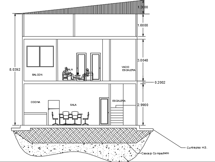 The right side section view of the 8x8m house building drawing is given in this file. This is two story residential building. On this ground floor, the car parking, living room, master bedroom, TV room, and common bathroom is available. On this first floor, the living room, kitchen, dining area, master bedroom, study room, and common bathroom is available. For more details download the AutoCAD drawing model from our website. Thank you for downloading the AutoCAD file from our cadbull website.