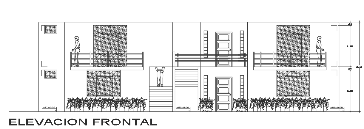 The front elevation view of the 18x9m 3bhk house building Autocad drawing