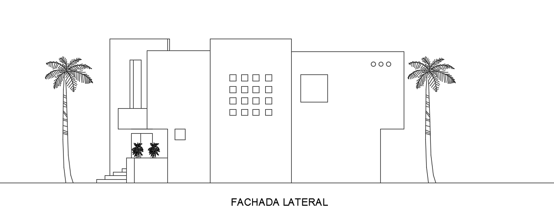 The lateral elevation view of the 10x12m luxury villa building AutoCAD 2d drawing