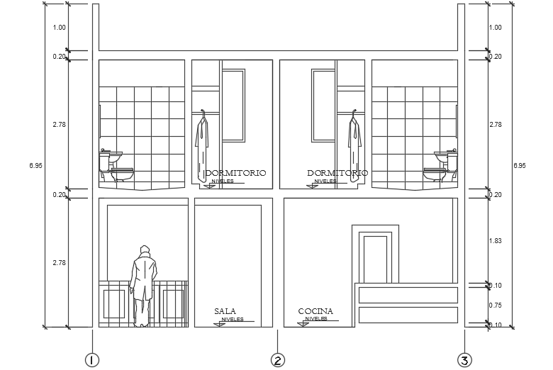 The front section view of the 8x20m villa two story house building cad drawing is given in this file. This is g+ 1 villa building. On this ground floor, the car parking, living room, kitchen, dining area, master bedroom, open space, and common bathroom is available. On this second floor, the master bedroom with the attached toilet, kid’s bedroom with the attached toilet, two guest bedroom with the attached toilet, and living room is available. For more details download the AutoCAD drawing model from our website. Thank you for downloading the AutoCAD file from our cadbull website.