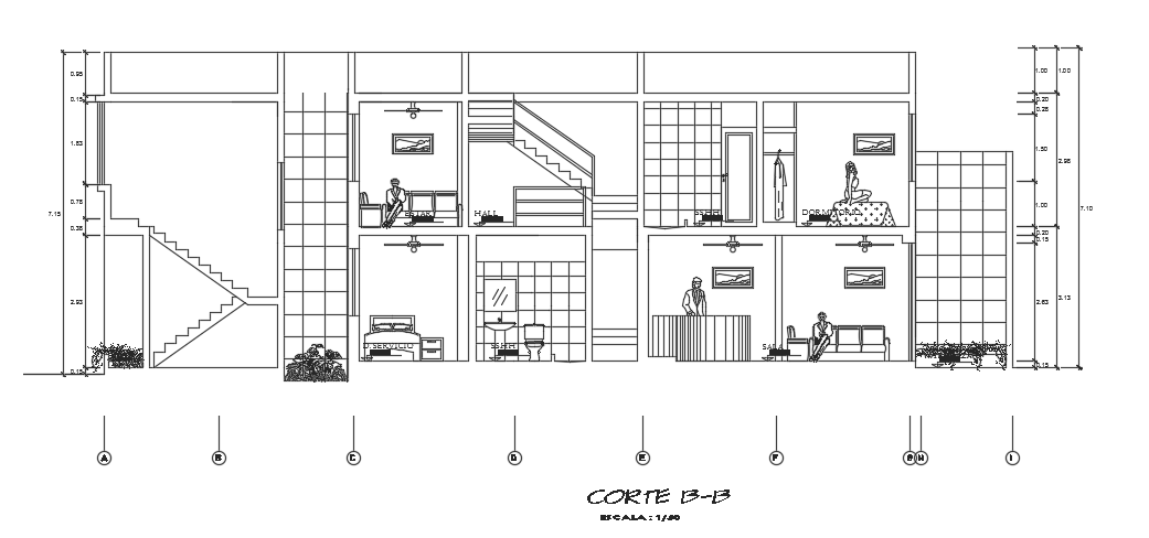 The right side elevation view of the 8x20m villa two story house building cad drawing is given in this file. This is g+ 1 villa building. On this ground floor, the car parking, living room, kitchen, dining area, master bedroom, open space, and common bathroom is available. On this second floor, the master bedroom with the attached toilet, kid’s bedroom with the attached toilet, two guest bedroom with the attached toilet, and living room is available. For more details download the AutoCAD drawing model from our website. Thank you for downloading the AutoCAD file from our cadbull website.