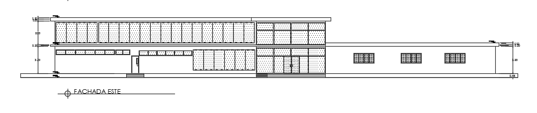 The east side elevation view of the108x94m architecture school building AutoCAD 2d drawing is given in this file