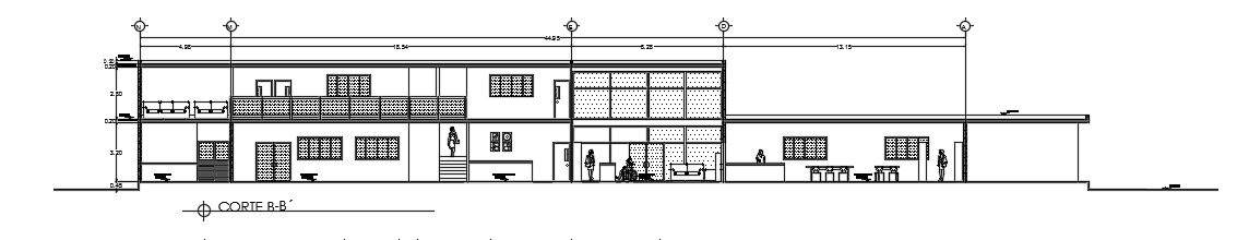 The right side section view of the 108x94m architecture school building AutoCAD 2d drawing is given in this file. The length and breadth of the school plan are 51m and 30m respectively. On this plan, class room, professor cabins, office room, account room, help desk, admin office, control room, conference room, cafeteria, kitchen, gent’s toilet, ladies toilet, and parking area is available. On this first floor, the audio rooms, and computer laboratory is available. For more details download the AutoCAD drawing model from our cadbull website. Thank you for downloading the AutoCAD files from our cadbull website.