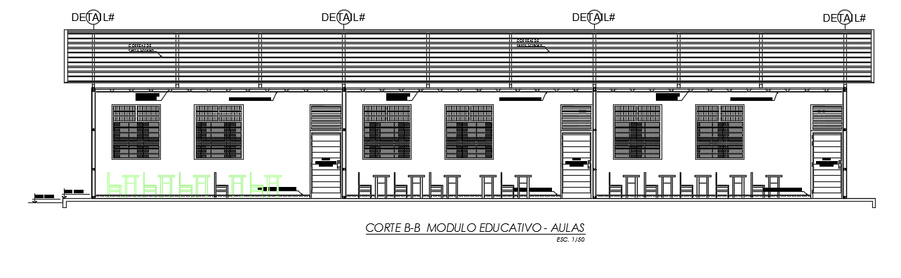 The front section view of the 24x8m college building Autocad drawing is given in this file. This is single story college building. On this floor plan, three class rooms are available. On each class, furniture’s are provided. The total height of the college building is 5.39m. For more details download the AutoCAD drawing model from our cadbull website. Thank you for downloading the AutoCAD files from our cadbull website.