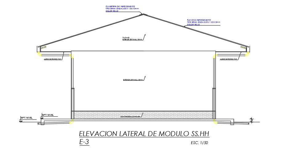 The lateral elevation view of the 8x7m college toilet building AutoCAD 2D drawing is given in this model. In this, gent’s and ladies toilets are provided. The total height of the toilet building is 5.39m. In ladies toilet, 8 water closets are available and 5 wash basins are available. On gent’s toilet, 5 water closet, and 5 wash basins are available. For more details download the AutoCAD drawing model from our cadbull website. Thank you for downloading the AutoCAD files from our cadbull website.