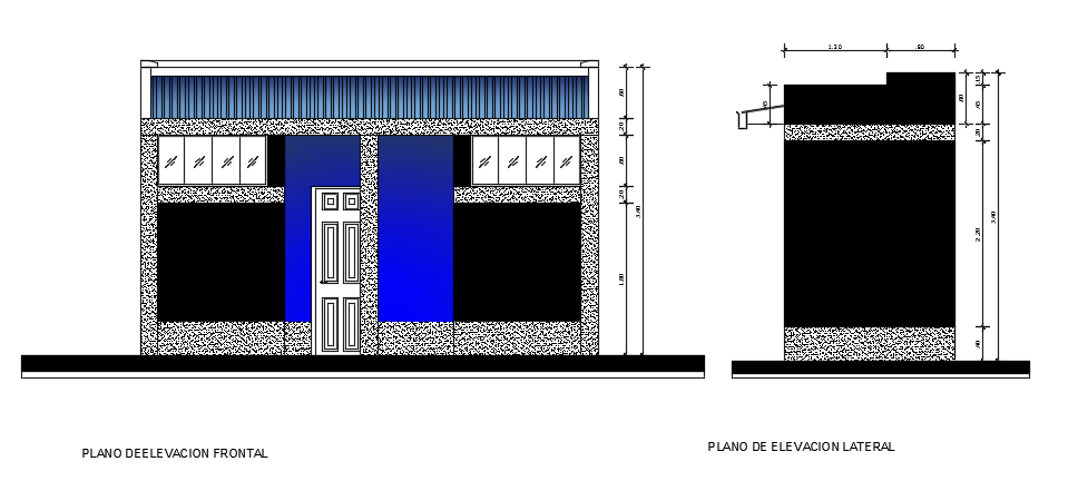The front and lateral elevation view of the 5400x2000mm toilet building AutoCAD drawing is given in this file. The total height of the toilet building is 3.4m. On this plan, gent’s and ladies toilet is available. For more details download the AutoCAD drawing model from our cadbull website. Thank you for downloading the AutoCAD files from our cadbull website.