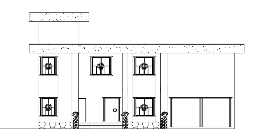 The west side elevation view of the 18x18m architecture two story house building cad drawing is given in this file. This is G+ 1 villa building. On this first floor, the living room, home office, kitchen, dining area, master bedroom with the attached toilet, and common bathroom is available. On this second floor, the living room, master bedroom with the attached toilet, two kid’s room, guest room, and common bathroom is available. For more details download the AutoCAD drawing model from our cadbull website. Thank you for downloading the AutoCAD files from our cadbull website.