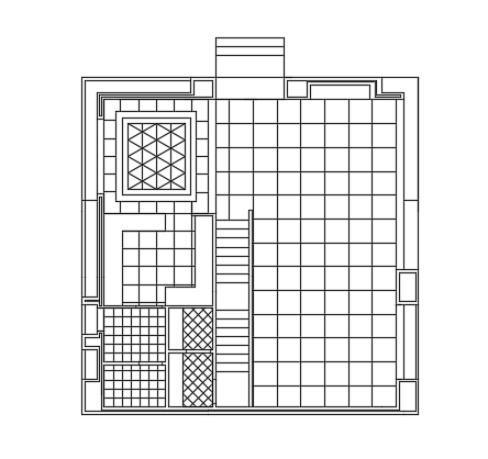 A layout of the 11x11m three story ground floor house plan cad 2d dwg file is given