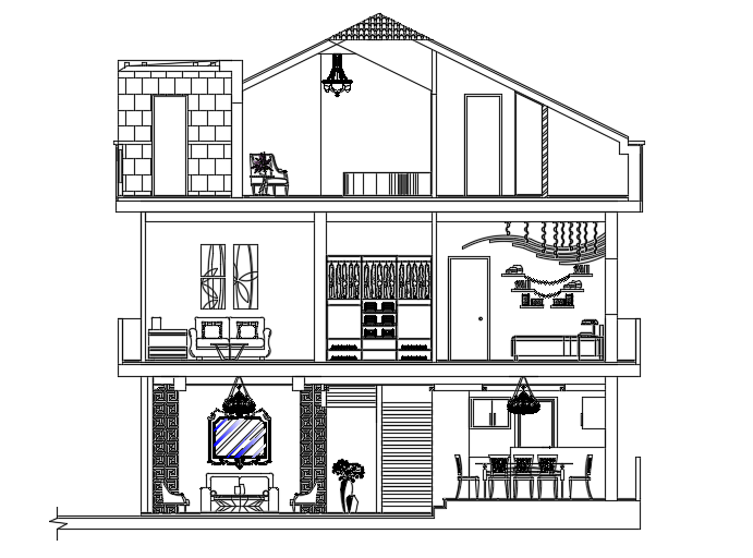 The main elevation view of the 11x11m three story house building cad 2d dwg file is given in this model. This is G+ 2 house building. On this ground floor, the living room, kitchen, maid room with the attached bathroom, & toilet, and dining area is available. On this first floor, the living room, master bedroom with the attached bathroom, kid’s bedroom, guest room, and common bathroom is available. On this second floor, the master bedroom with the attached bathroom, & toilet is available. For more details download the AutoCAD drawing model from our cadbull website. Thank you for downloading the AutoCAD files from our cadbull website.