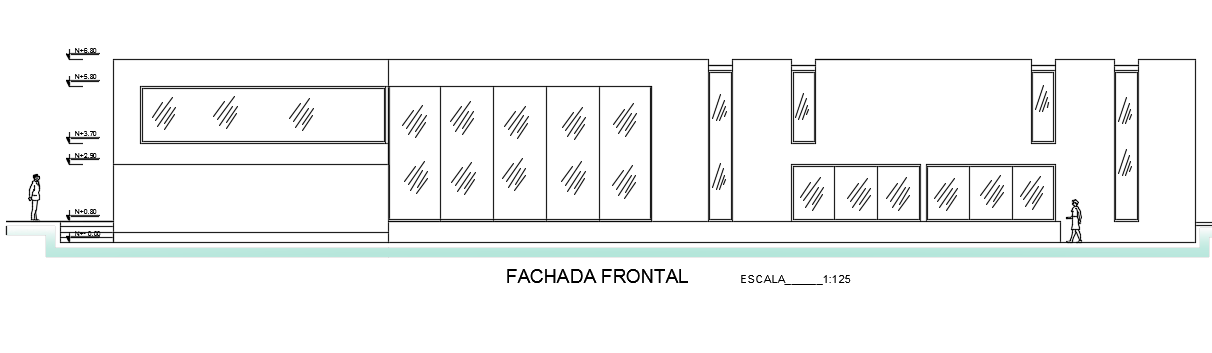 The front elevation view of the 63x64 cottage building drawing is given in this file