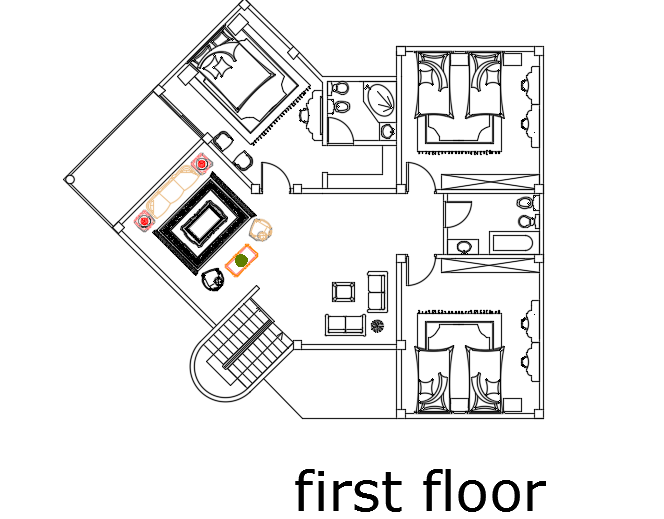 21x17m first floor villa plan AutoCAD drawing is given in this file