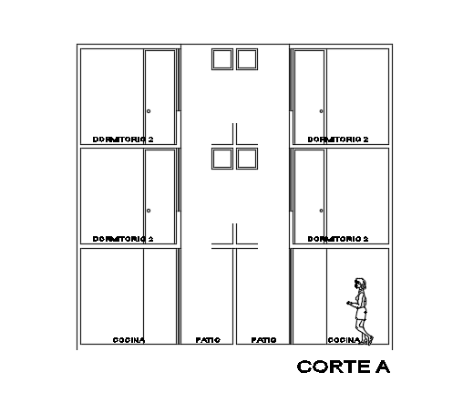 The back side cut section view of the 7x8m house building 2d cad drawing file is given in this model. This is twin house duplex building. On this ground floor, the living room, kitchen, dining area, and patio is available. On this first floor, the master bedroom, guest bedroom, and common bathroom is available. On this second floor, the master bedroom, living room, and common bathroom is available. For more details download the AutoCAD drawing file from our cadbull website. Thank you for downloading the AutoCAD drawing model from our website.