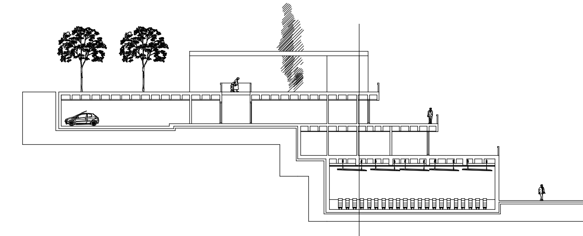 A section view of the media office building cad drawing is given in this file. This is three story studio building. For more details download the AutoCAD drawing file from our cadbull website. Thank you for downloading the AutoCAD drawing model from our website.