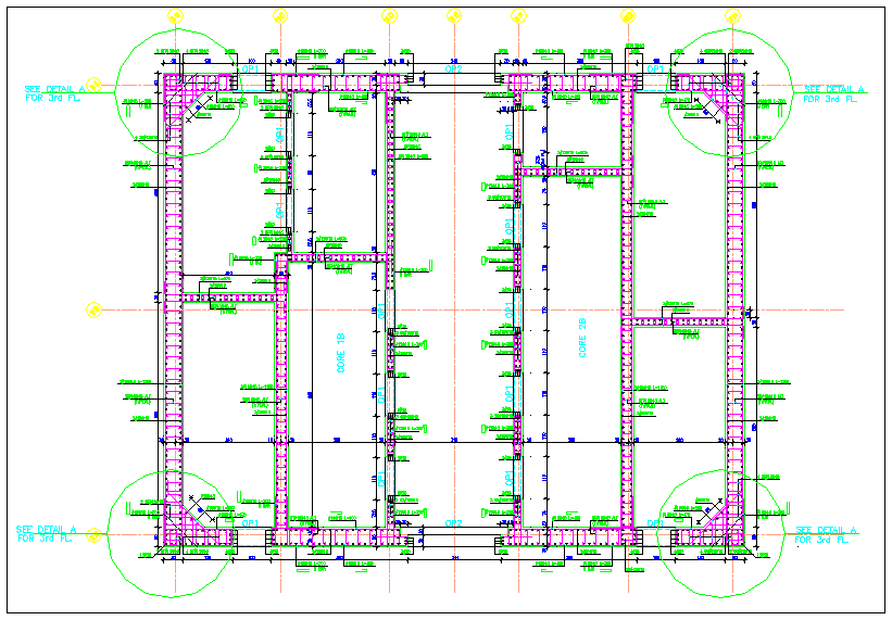 Central core second floor and third floor of tower view dwg file with construction detail of area and view of constructional detail.