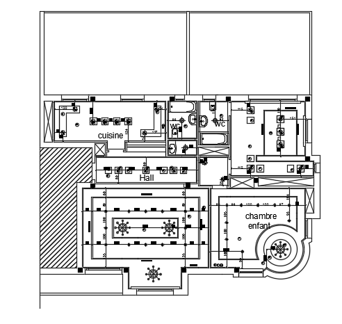 The lighting detail of the 17x17m house plan cad drawing is given in this file. This is a 2bhk house plan. On this floor plan, the living room, kitchen, hall, dining area, master bedroom, kid’s bedroom, and common bathroom is available. For more details download the AutoCAD drawing model from our cadbull website. Thank you for downloading the AutoCAD files from our cadbull website.