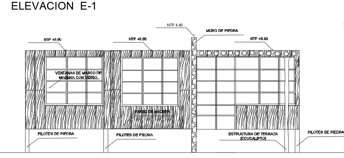The front elevation view of the 8x10m architecture single story house building cad drawing