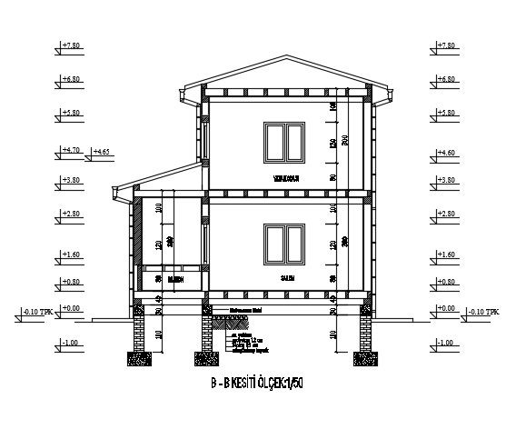 The right side cut section view of the 6x5m house building 2d AutoCAD model is given in this file. This is two story residential building. On this ground floor, the living room, kitchen, and common bathroom is available. On this first floor, the hall, master bedroom, and common bathroom is available. For more detail download the AutoCAD 2d drawing file from our website. Thank you for downloading the AutoCAD drawing file from our cadbull website.