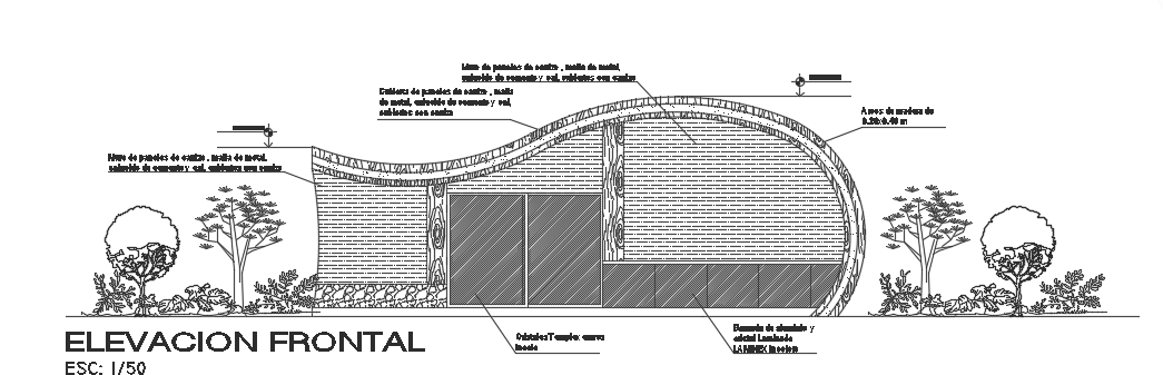 The front elevation view of the 10x22m luxury bungalow house building cad drawing is given in this file. This is single story bungalow house building. On this plan, the living room, kitchen, dining area, master bedroom with the attached toilet, kid’s bedroom, open terrace, garden, and common bathroom is available. For more detail download the AutoCAD 2d drawing file from our website. Thank you for downloading the AutoCAD drawing file from our cadbull website.