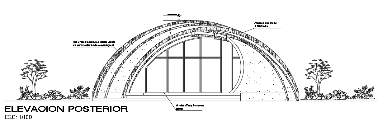 The back side elevation view of the 12x17m bungalow house building 2d CAD DWG drawing file is given in this model. This is single story bungalow house building. On this plan, the living room, kitchen, master bedroom with the attached toilet, open terrace, garden, and common bathroom is available. For more detail download the AutoCAD 2d drawing file from our website. Thank you for downloading the AutoCAD drawing file from our cadbull website.