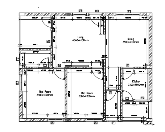 25x20m apartment house floor plan 2d AutoCAD drawing is given in this file