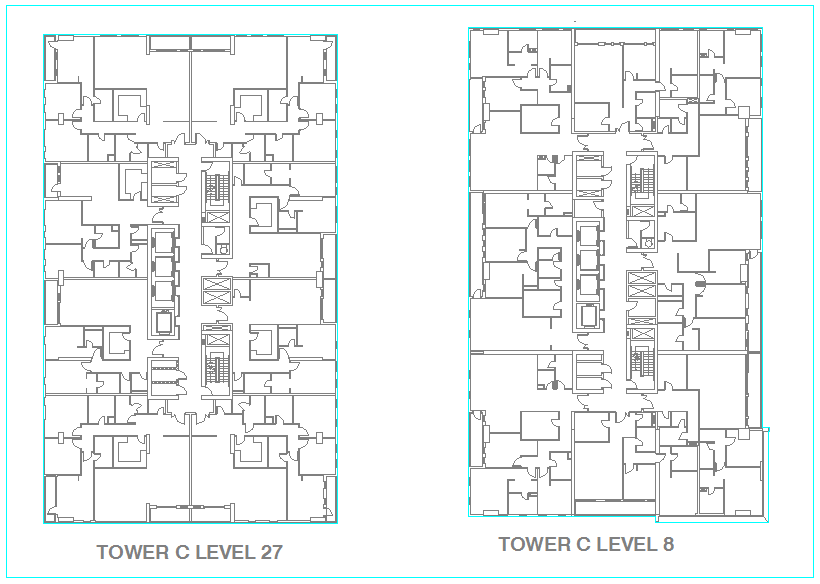 Keyplan tower design for level 27 and 8 dwg file with view of entry way,room view and wall and distribution of area with 27 and 8 level.