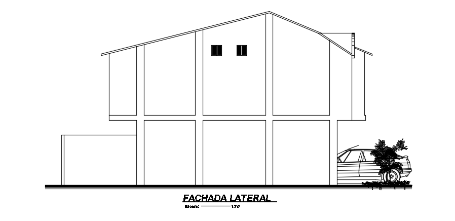 The left side elevation view of the 6x12m two story duplex house building cad model is given in this file. On this ground floor plan, the living room, kitchen, dining area, lavanderia, and common bathroom is available. On this first floor, the family room, master bedroom, kid’s bedroom, guest bedroom, and common bathrooms are available. For more detail download the AutoCAD 2d drawing file from our website. Thank you for downloading the AutoCAD drawing file from our cadbull website.