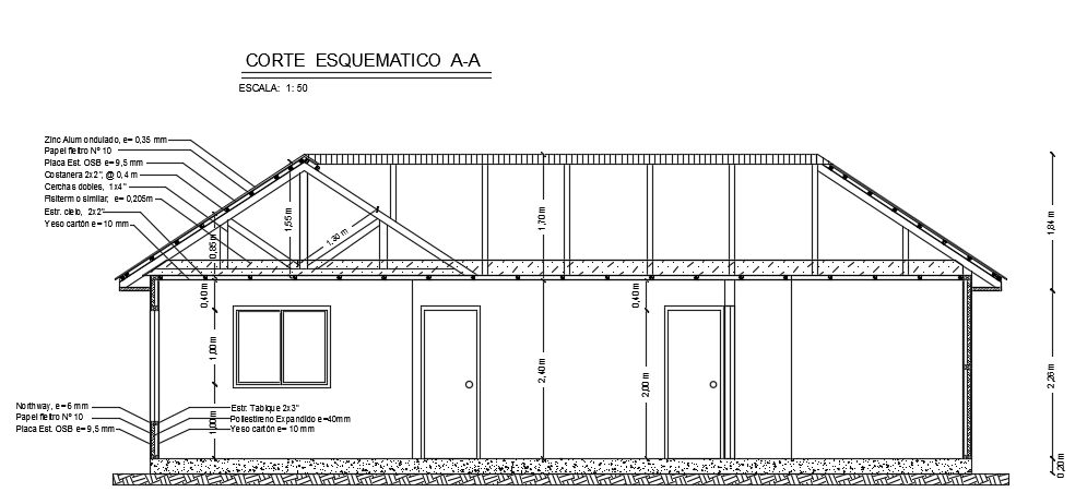 A section view of the 7x12m architecture house building 2d AutoCAD drawing is given in this file. This is single story house building. On this floor plan, the living room, kitchen, dining area, master bedroom, kid’s bedroom, and common bathroom is available. For more details download the AutoCAD drawing model is given in this file. Thank you for downloading the AutoCAD drawing model from our cadbull website.